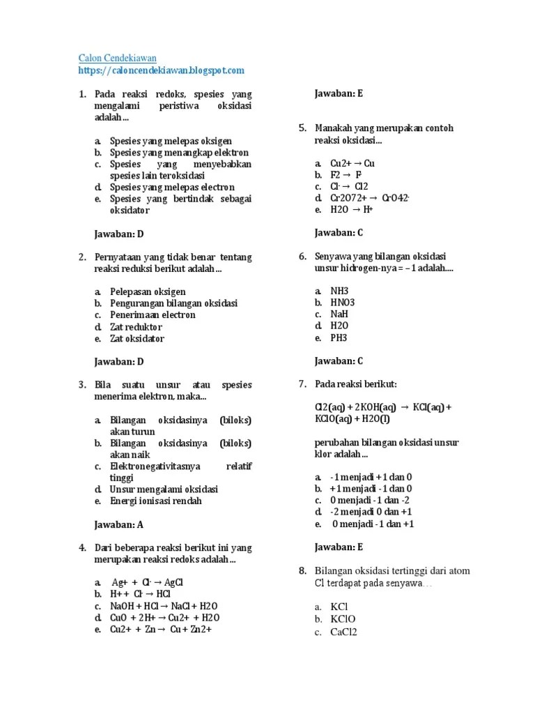 Reaksi Berikut Ini Yang Merupakan Reaksi Redoks Adalah - Soal Soal Reaksi Redoks Tresca Study Group : Reaksi redoks adalah reaksi dimana terjadi perubahan biloks dari atom unsur sebelum dan sesudah reaksi, perubahan biloks tersebut berupa reaksi .. Reaksi redoks adalah reaksi yang didalamnya terjadi perpindahan elektron secara berurutan dari satu spesies kimia ke spesies kimia lainnya, yang sesungguhnya . Diantara reaksi berikut yang termasuk reaksi auto redoks adalah …. Mno2 + hcl mncl2 + h2o + cl2. Ada beberapa jenis reaksi redoks yang kita kenal, meluputi reaksi kombinasi, dekomposisi, pertukaran, dan disproporsionasi. Redoks adalah istilah yang menjelaskan perubahan bilangan oksidasi dalam sebuah reaksi kimia.